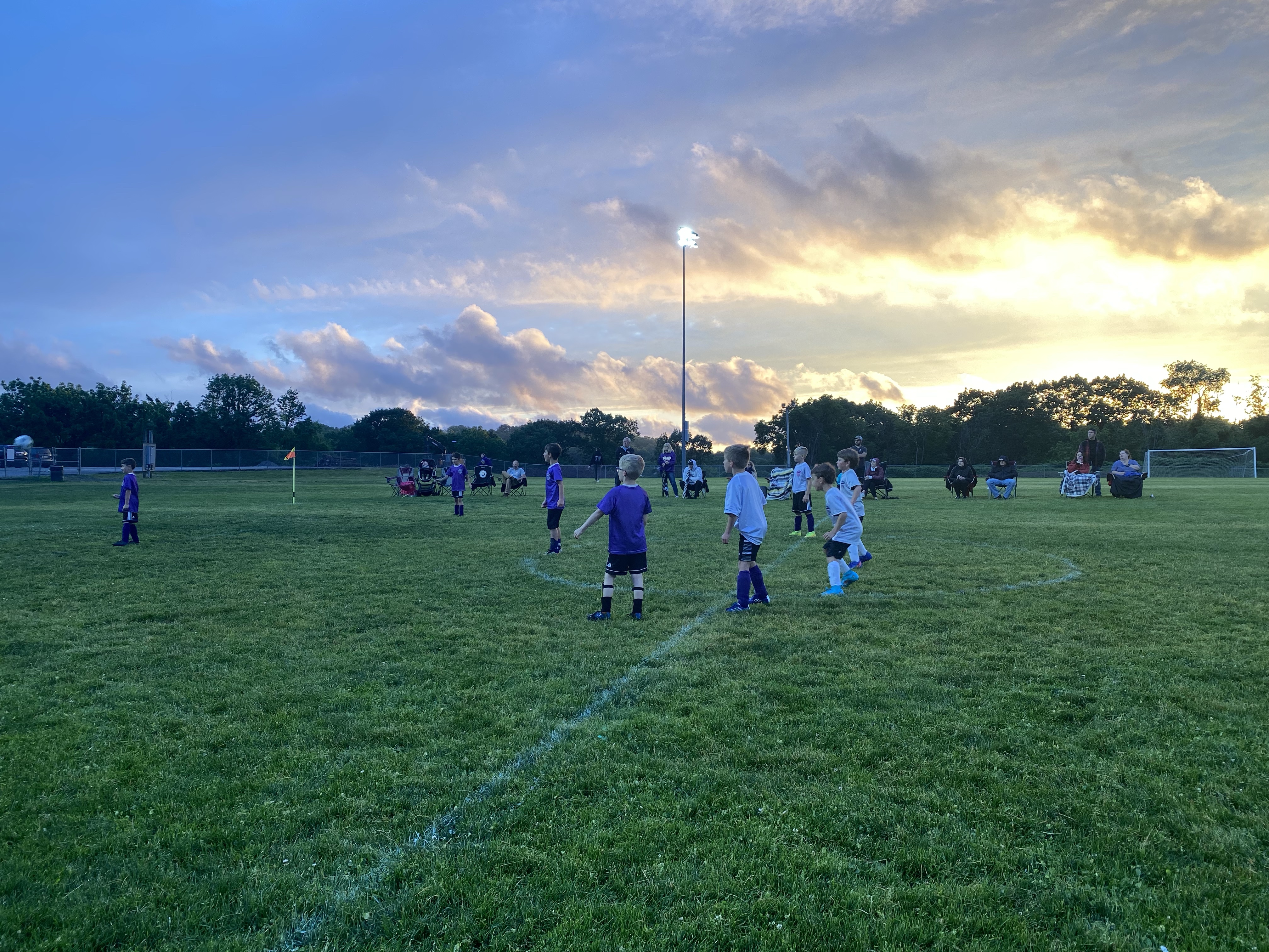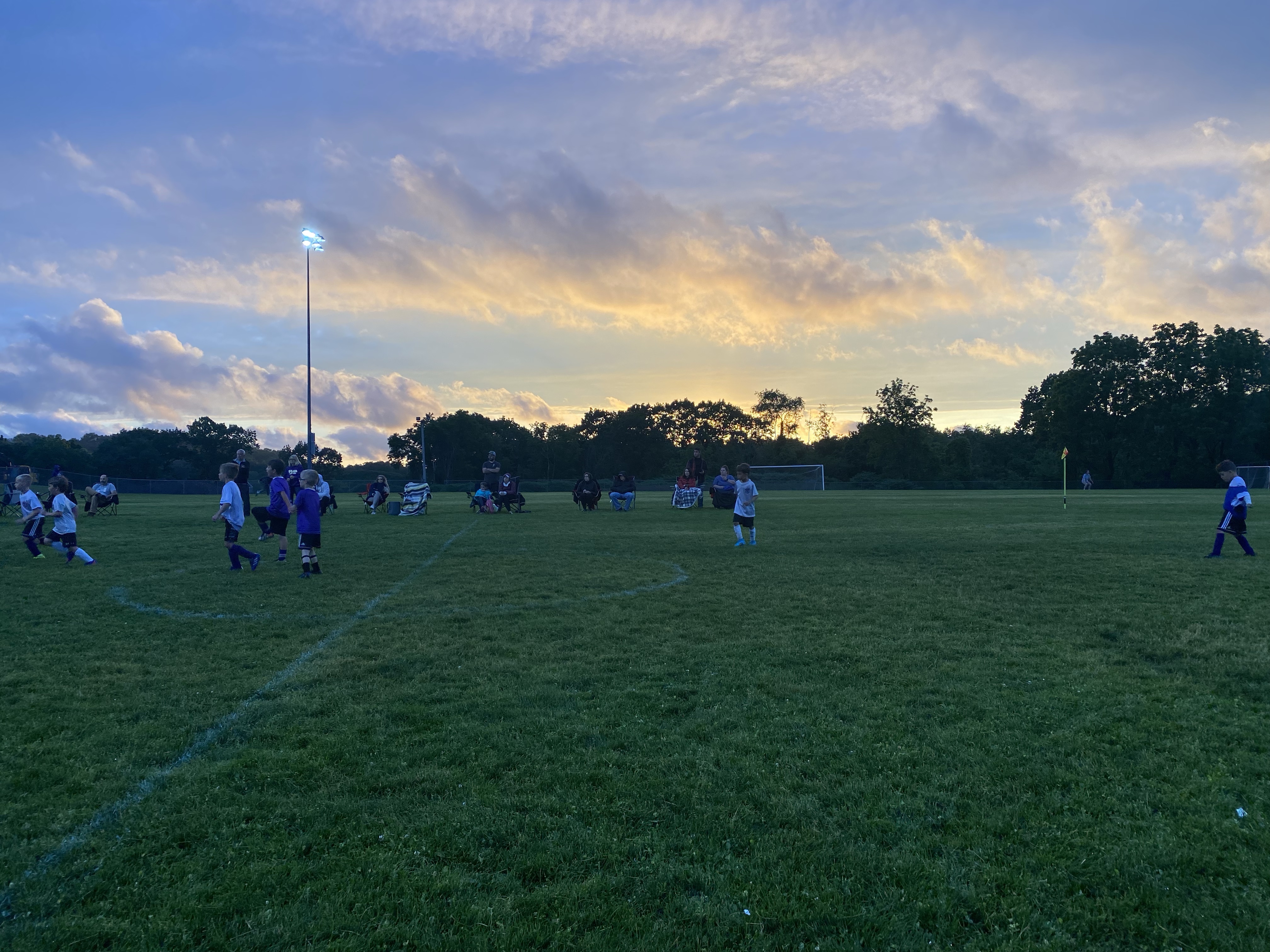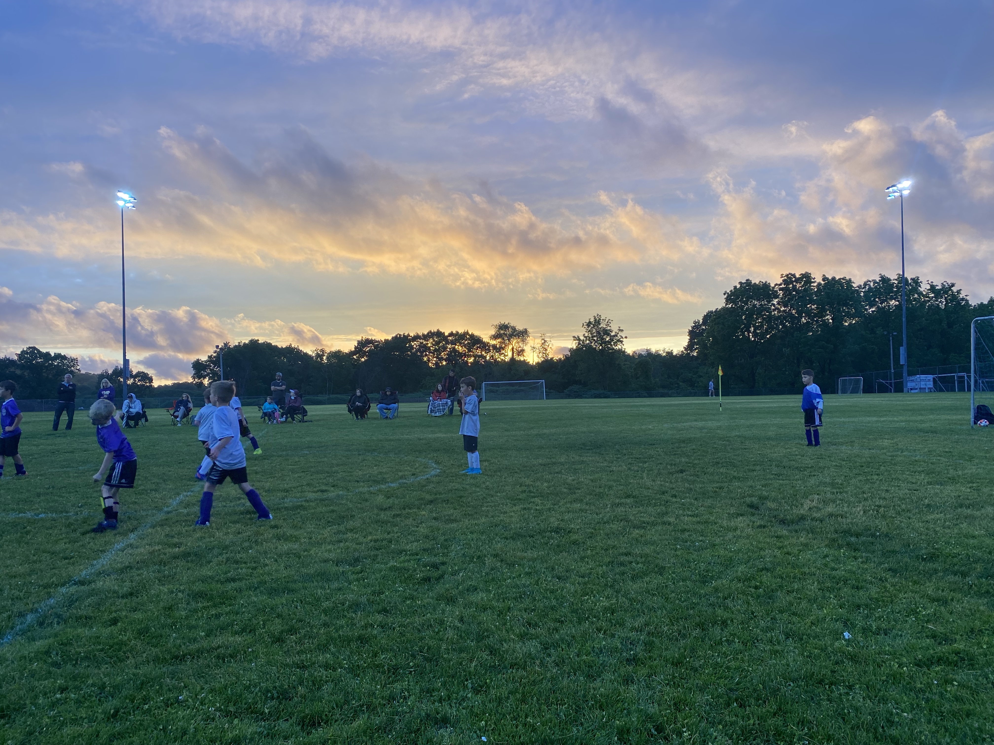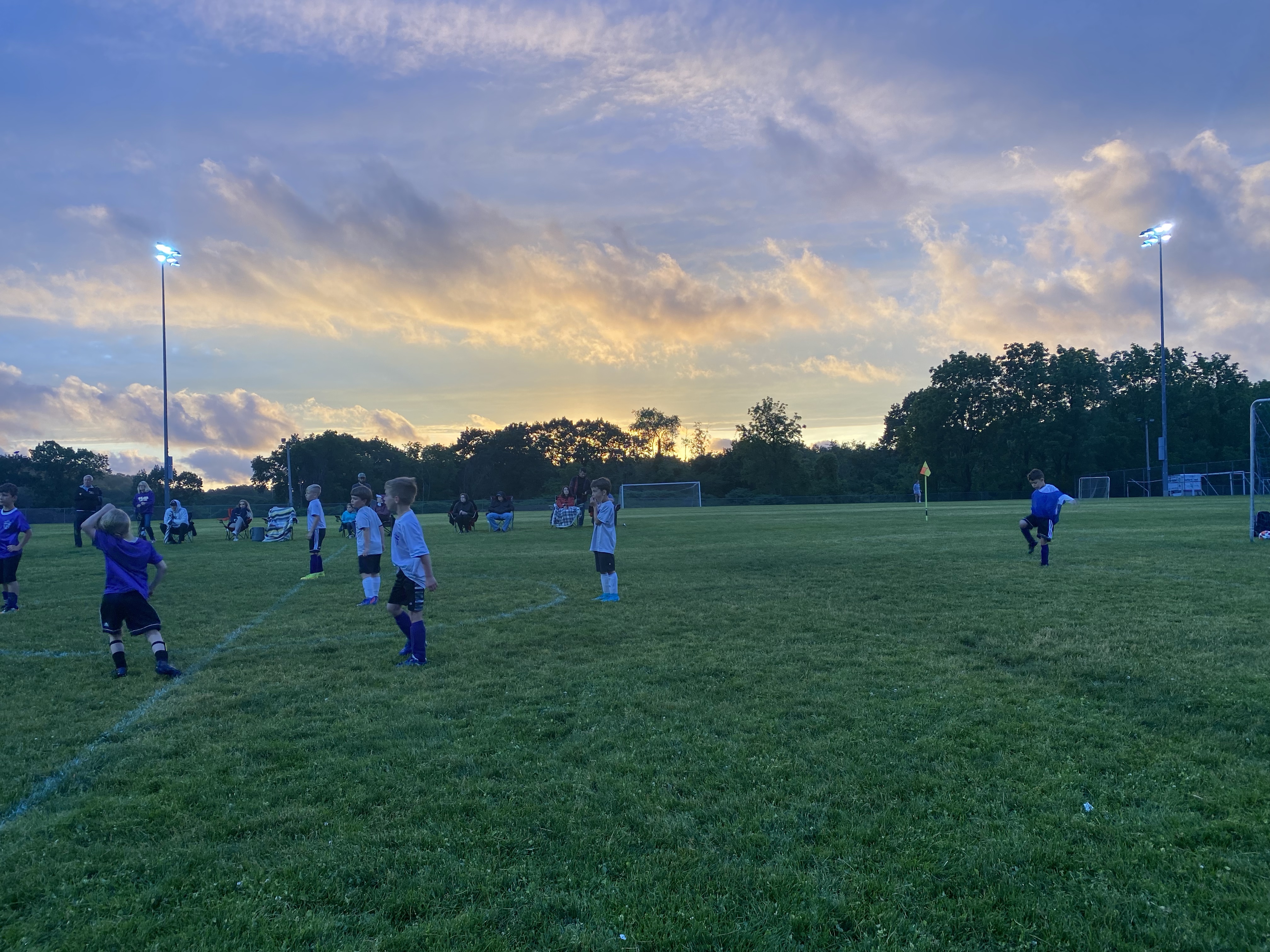 This is Grass Roots Football in Plum Boro, PA. Normally the lights are saved for the big kids but with all the 😜 crazy rain this spring season we were able to reschedule one of our make up games to a Thursday Night. Nature treated the Dynamo and Crew to a great sunset, a watered down pitch and really nice temperatures around 67 degrees resulting in anawesomee night for soccer.