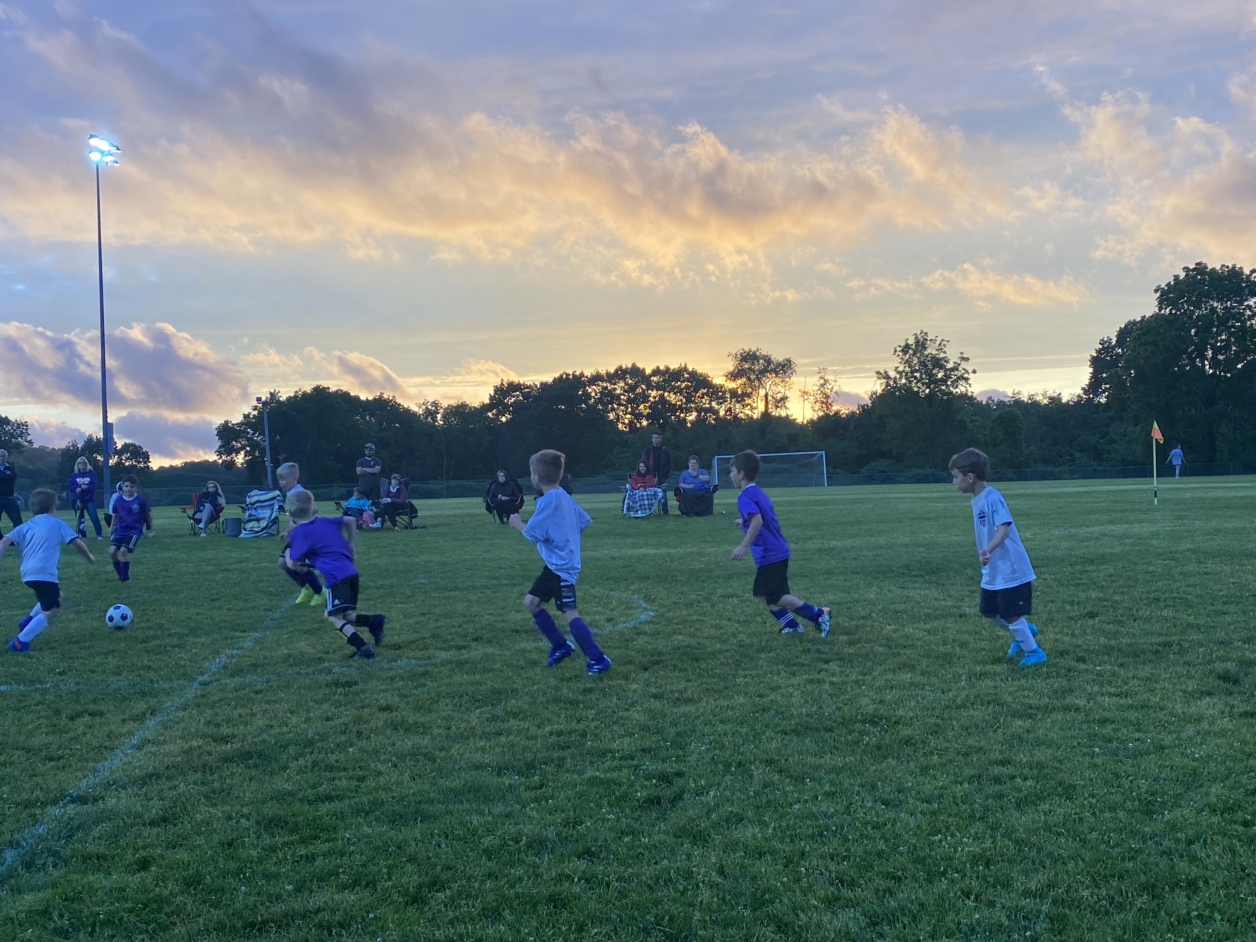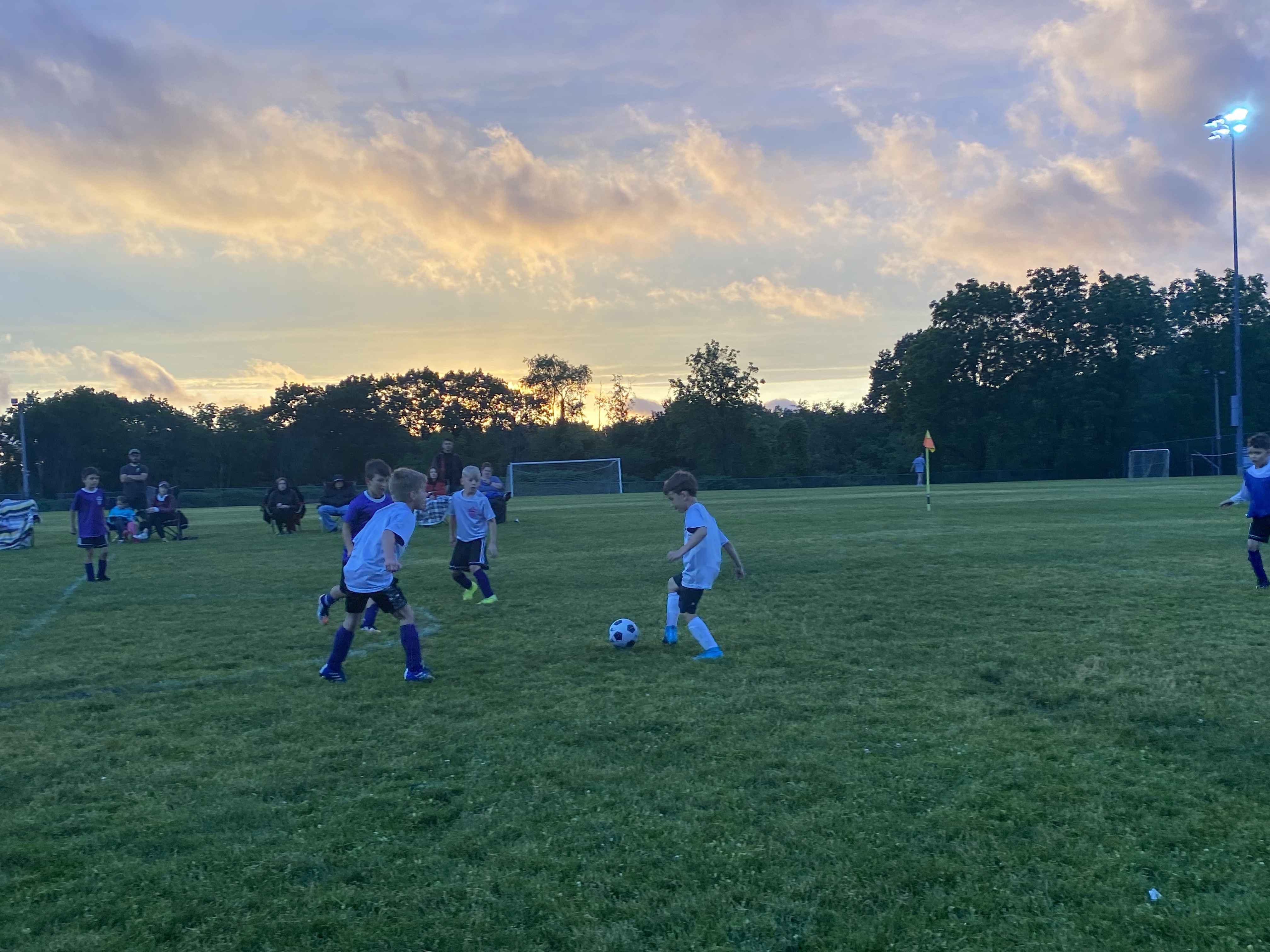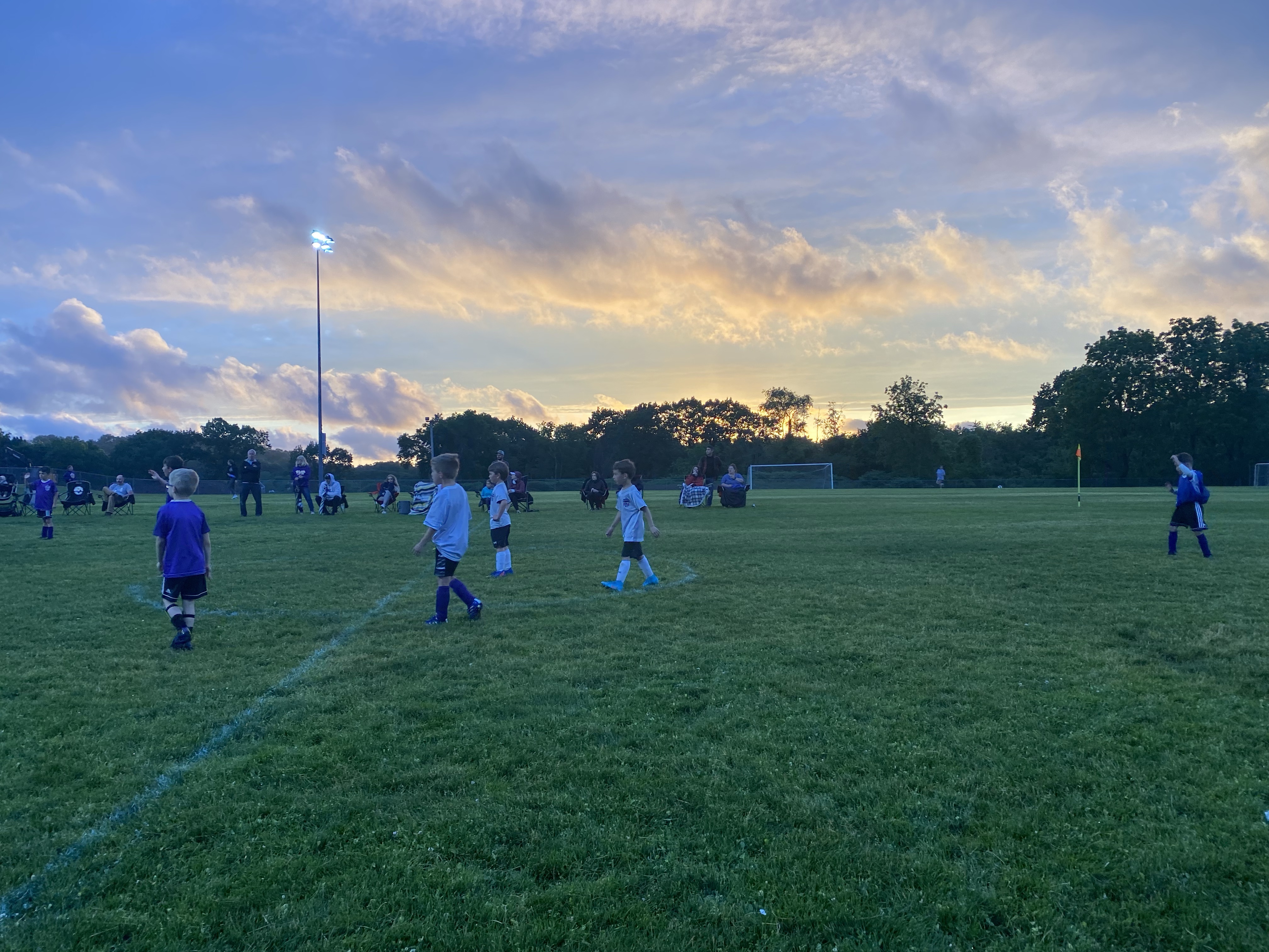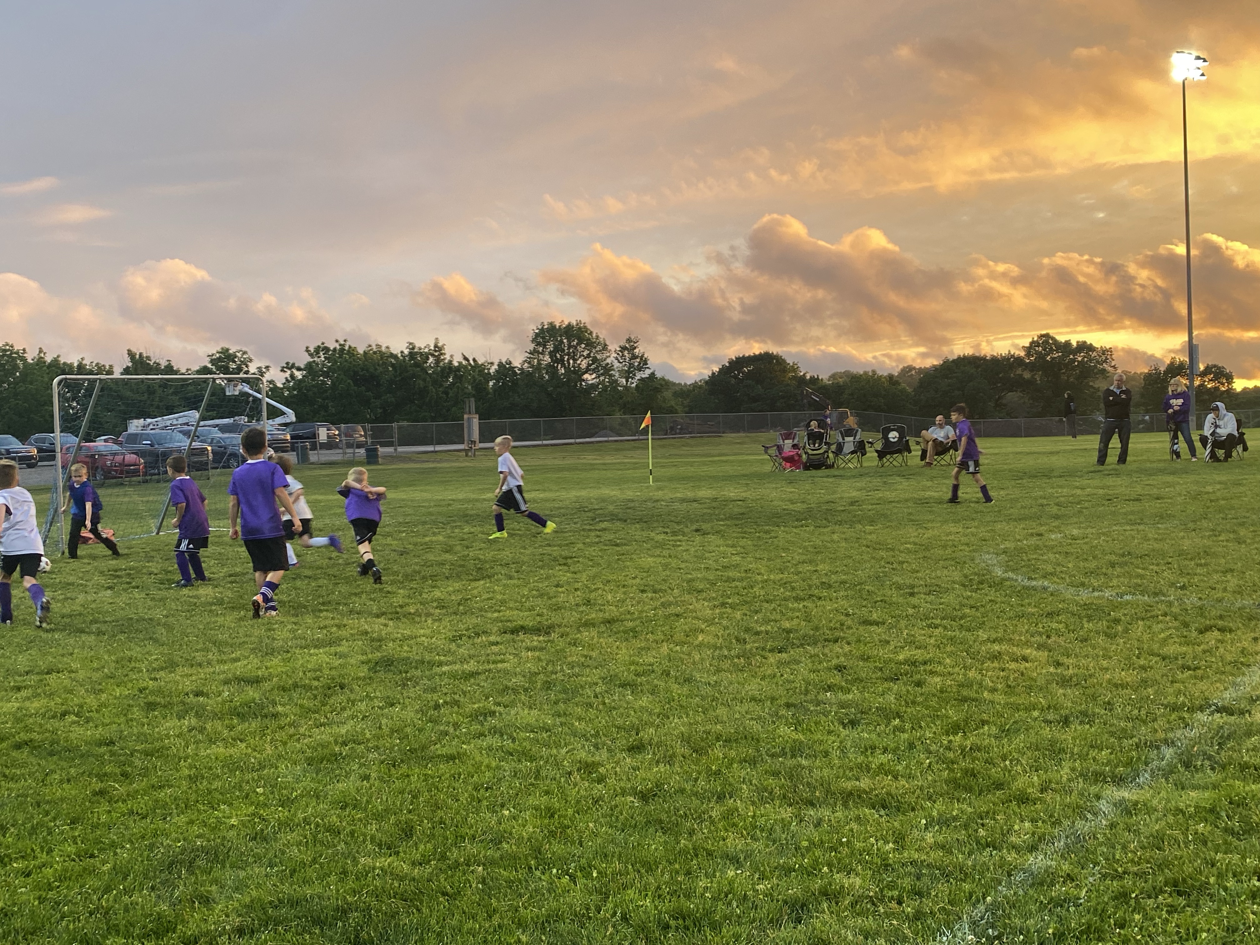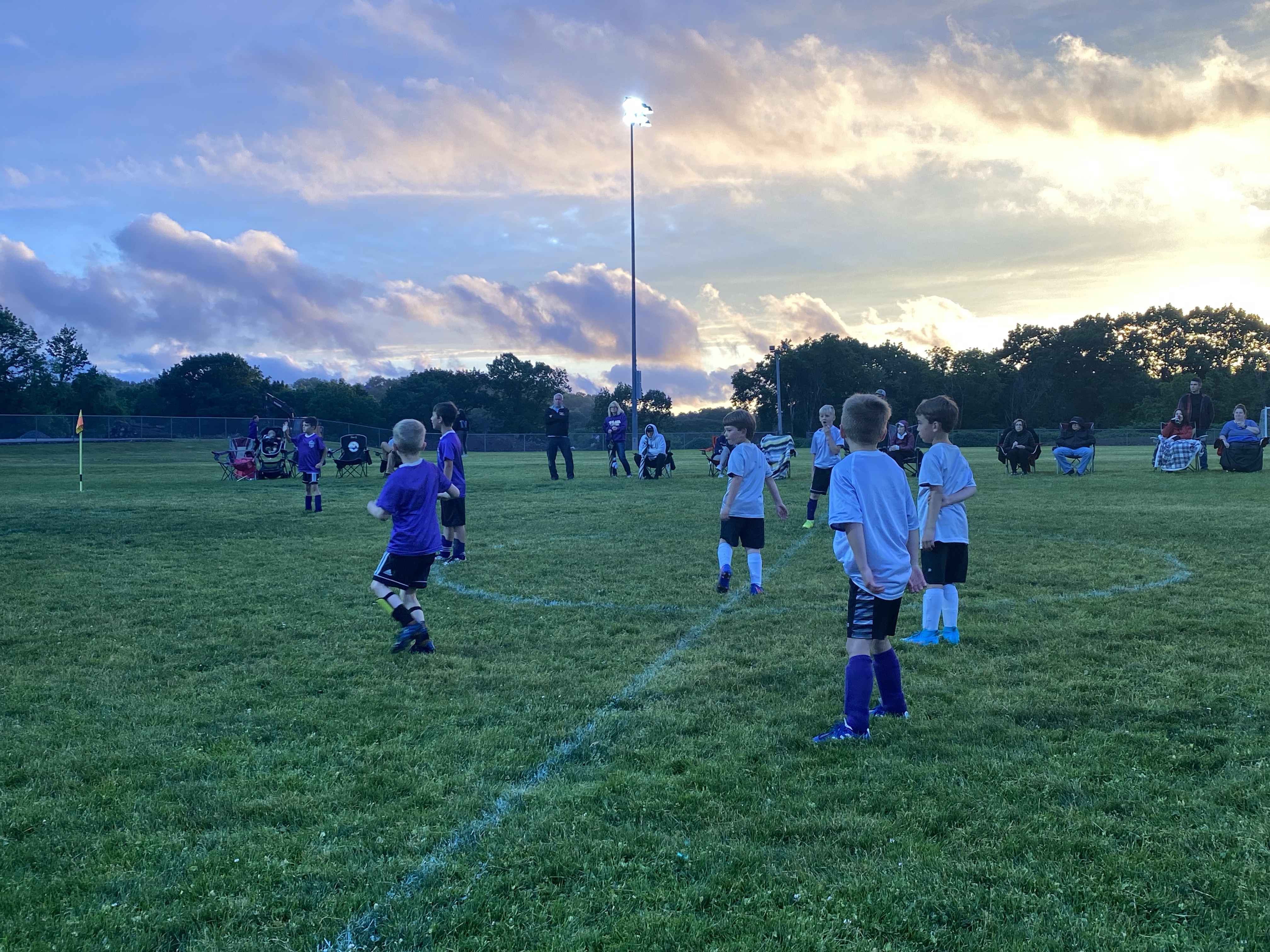 This is Grass Roots Football in Plum Boro, PA. Normally the lights are saved for the big kids but with all the 😜 crazy rain this spring season we were able to reschedule one of our make up games to a Thursday Night. Nature treated the Dynamo and Crew to a great sunset, a watered down pitch and really nice temperatures around 67 degrees resulting in anawesomee night for soccer.