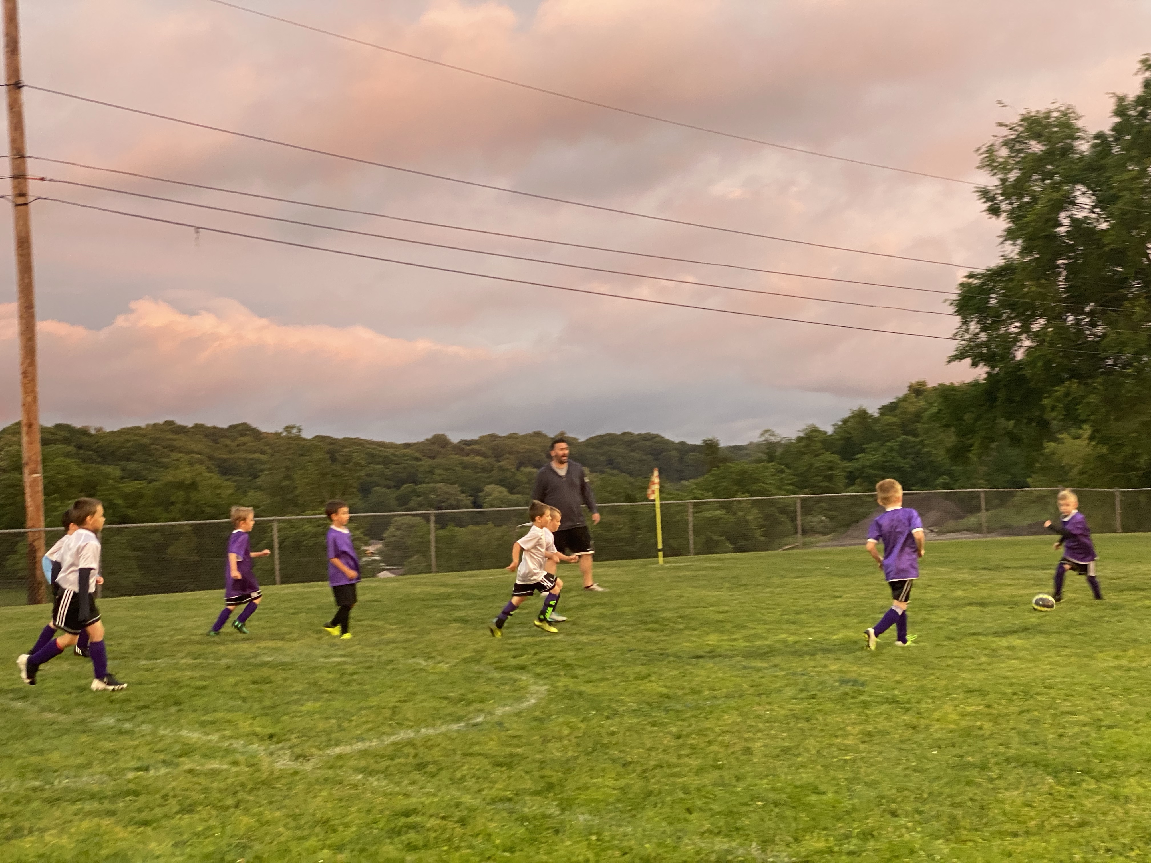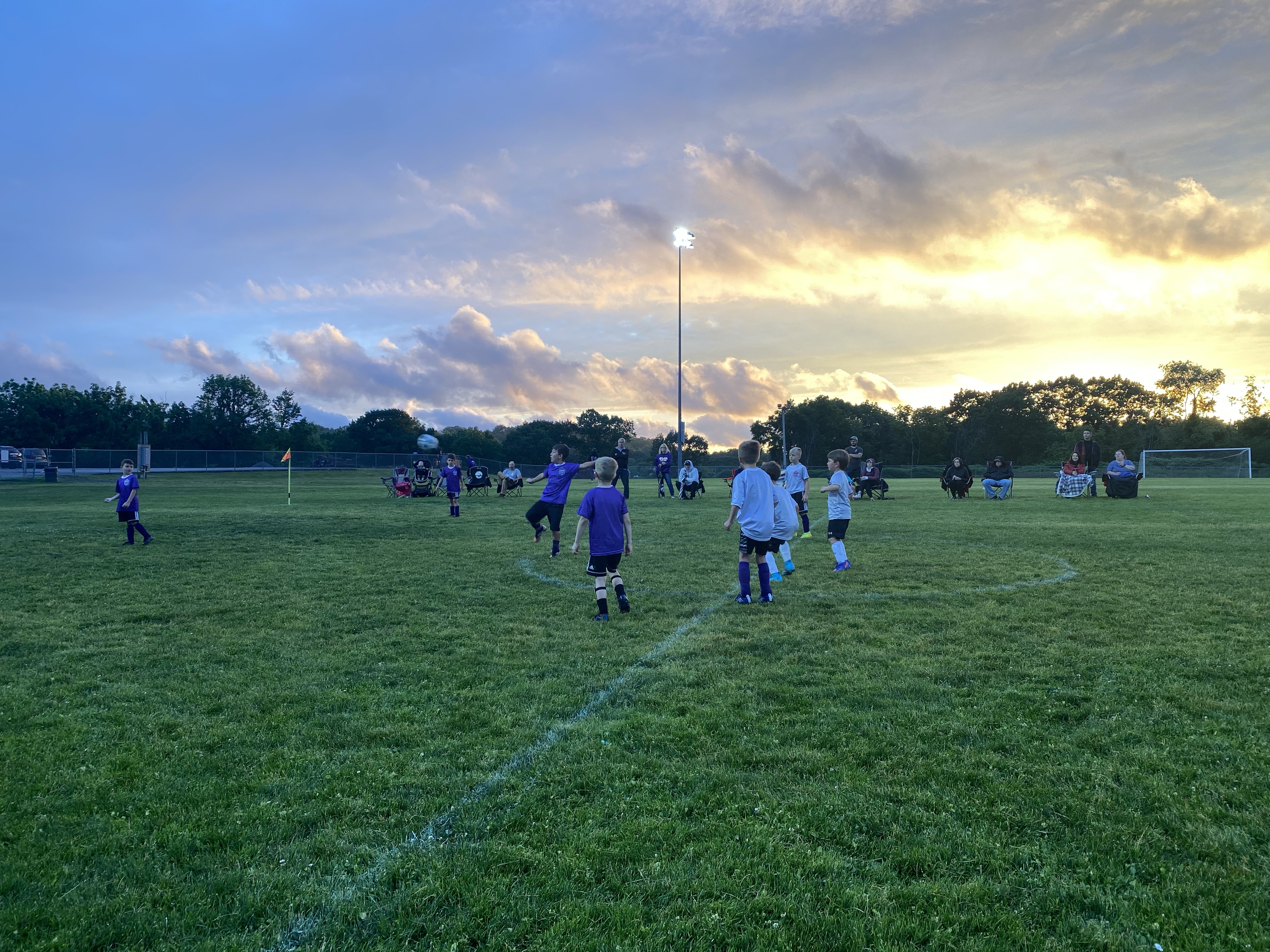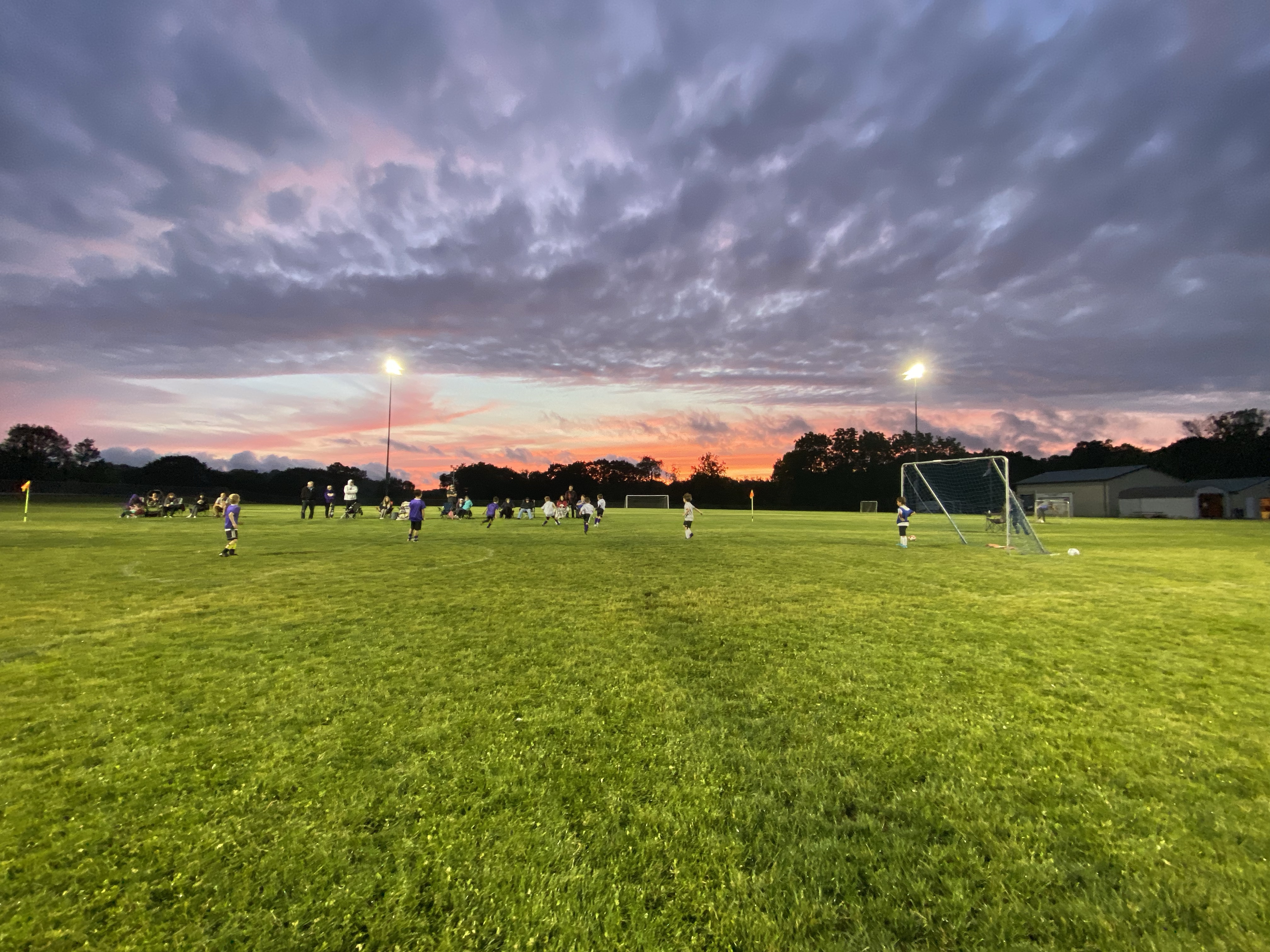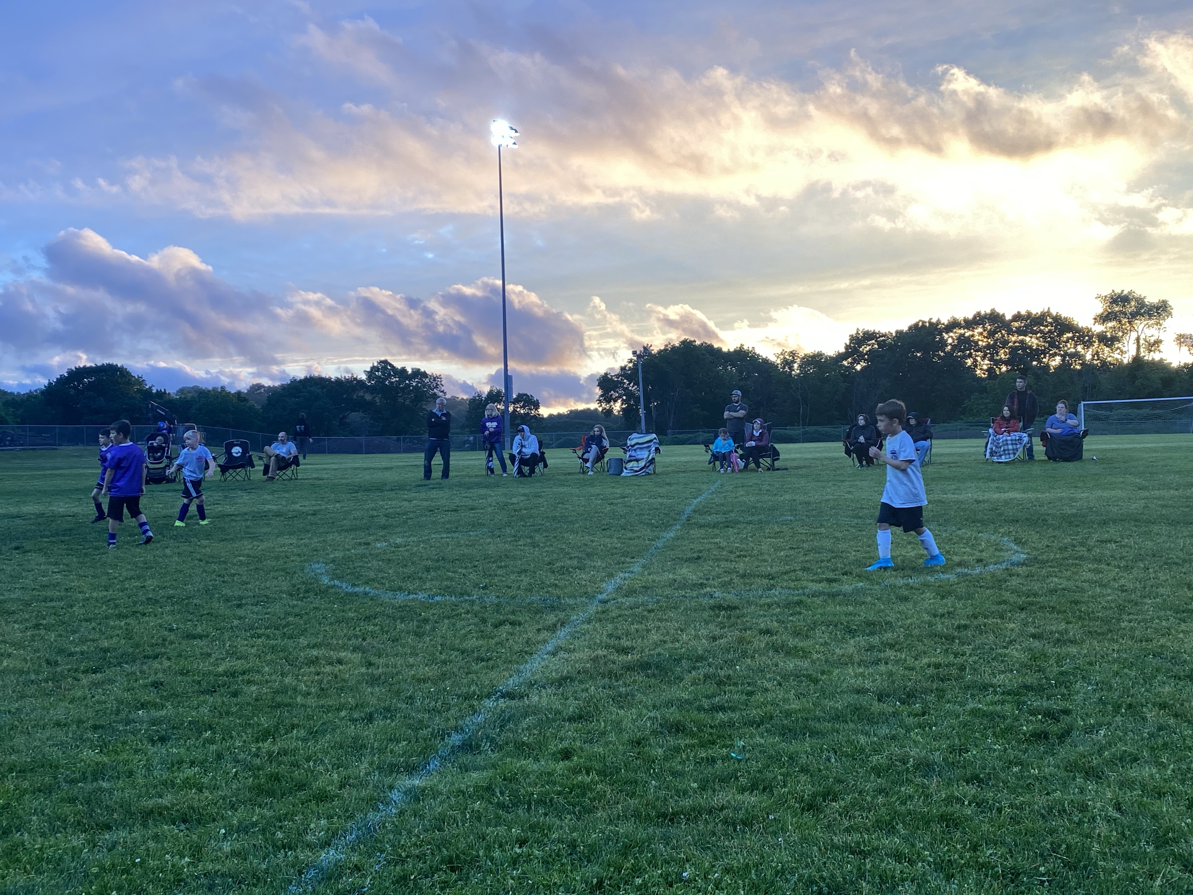 This is Grass Roots Football in Plum Boro, PA. Normally the lights are saved for the big kids but with all the 😜 crazy rain this spring season we were able to reschedule one of our make up games to a Thursday Night. Nature treated the Dynamo and Crew to a great sunset, a watered down pitch and really nice temperatures around 67 degrees resulting in anawesomee night for soccer.
