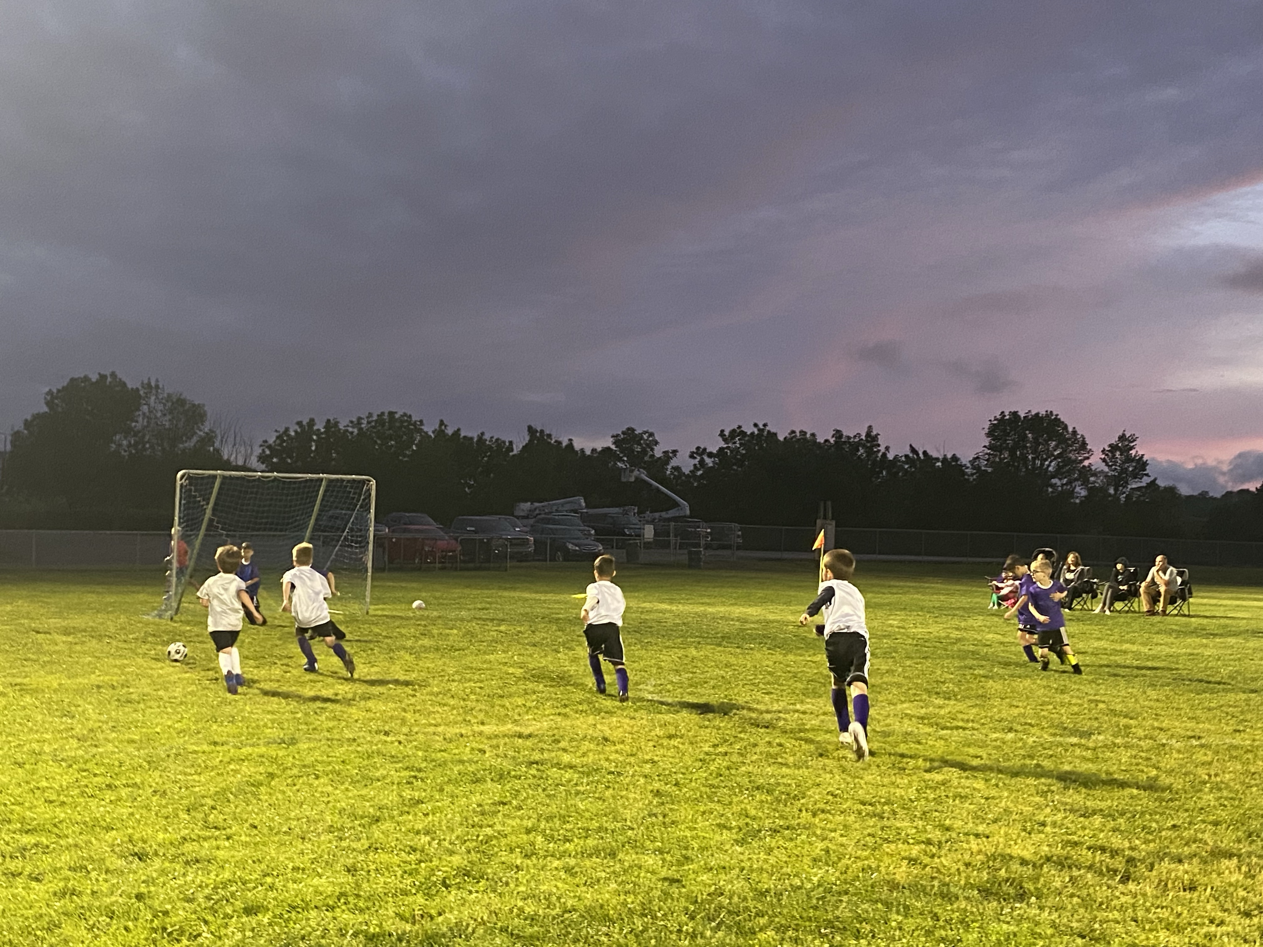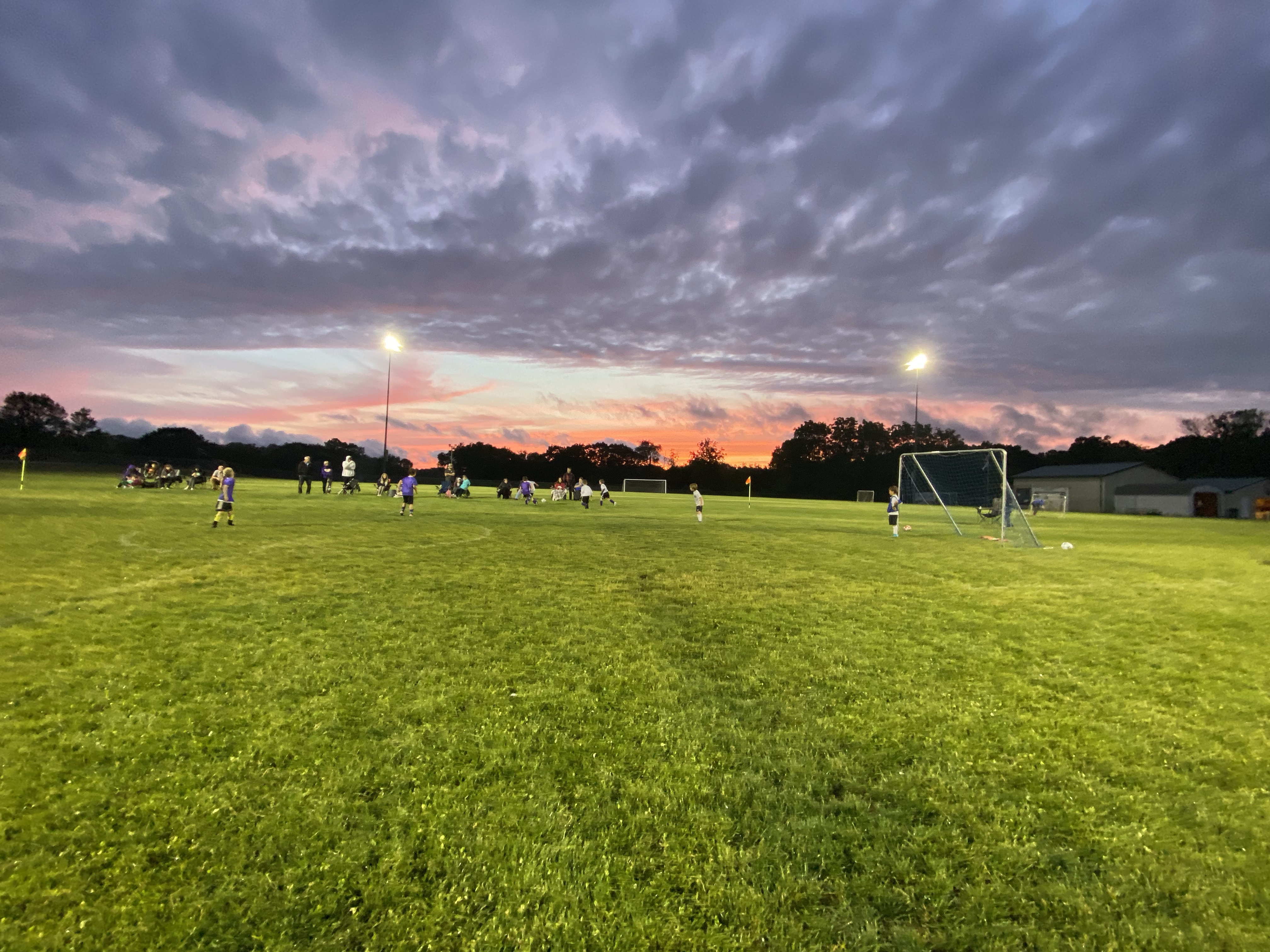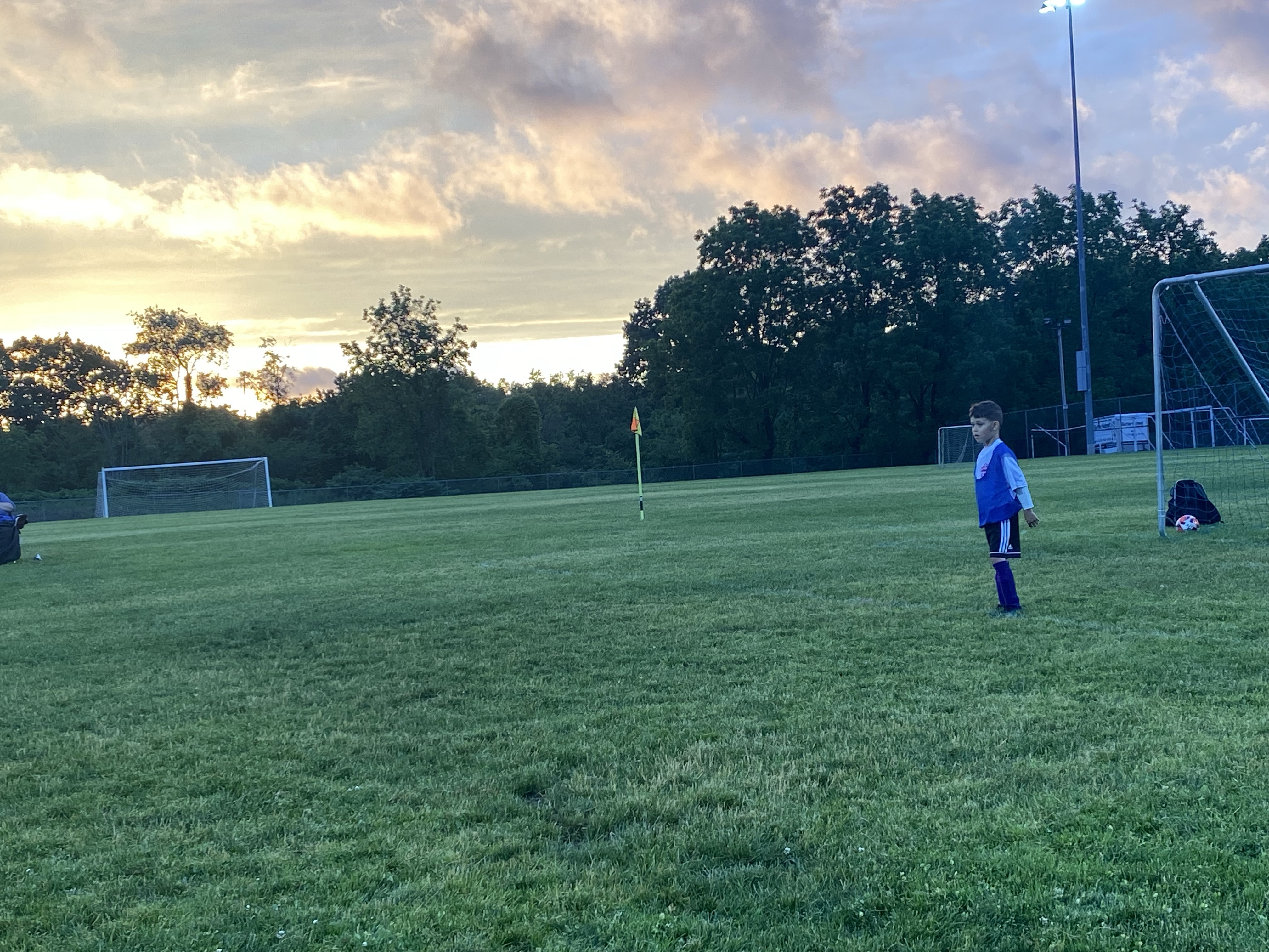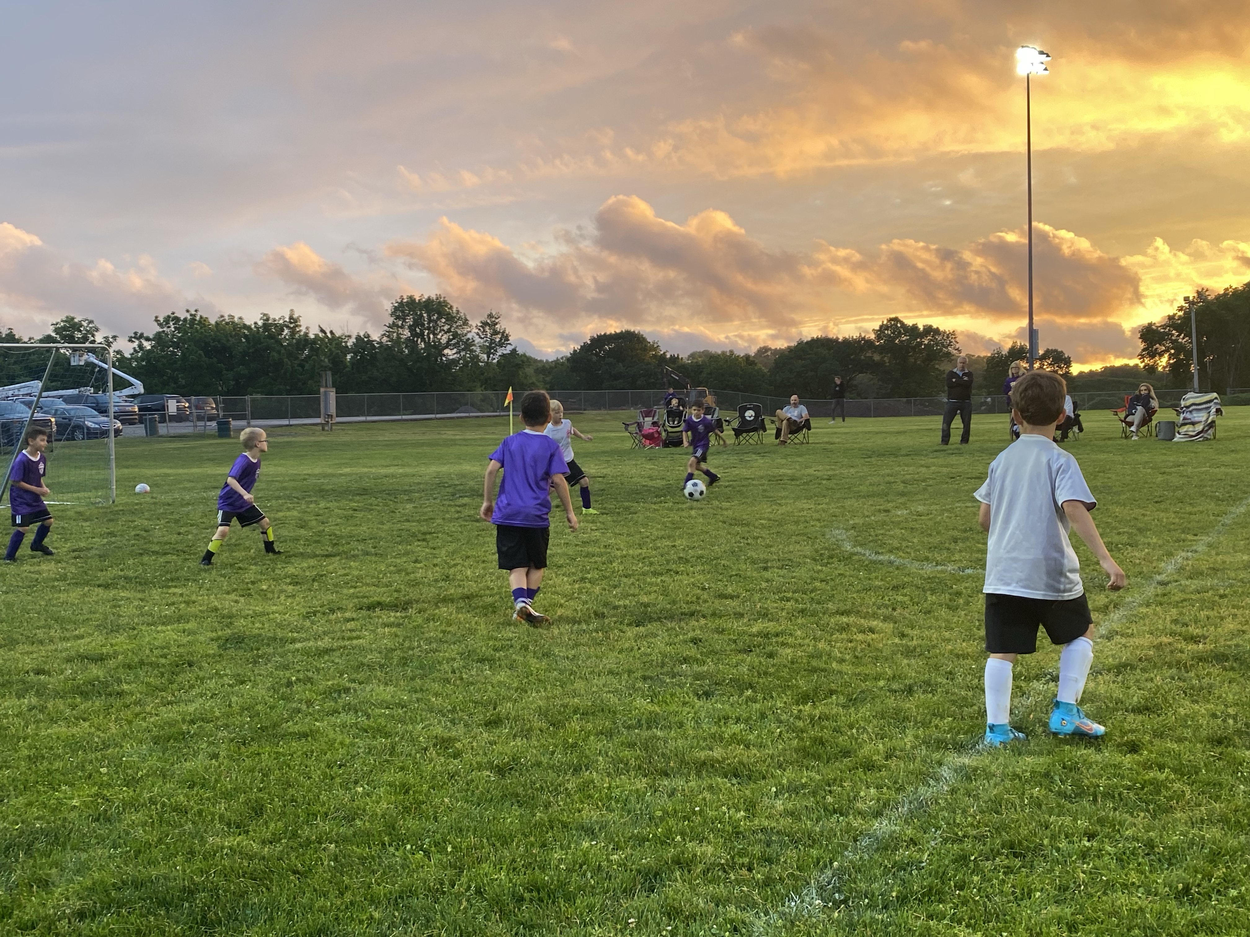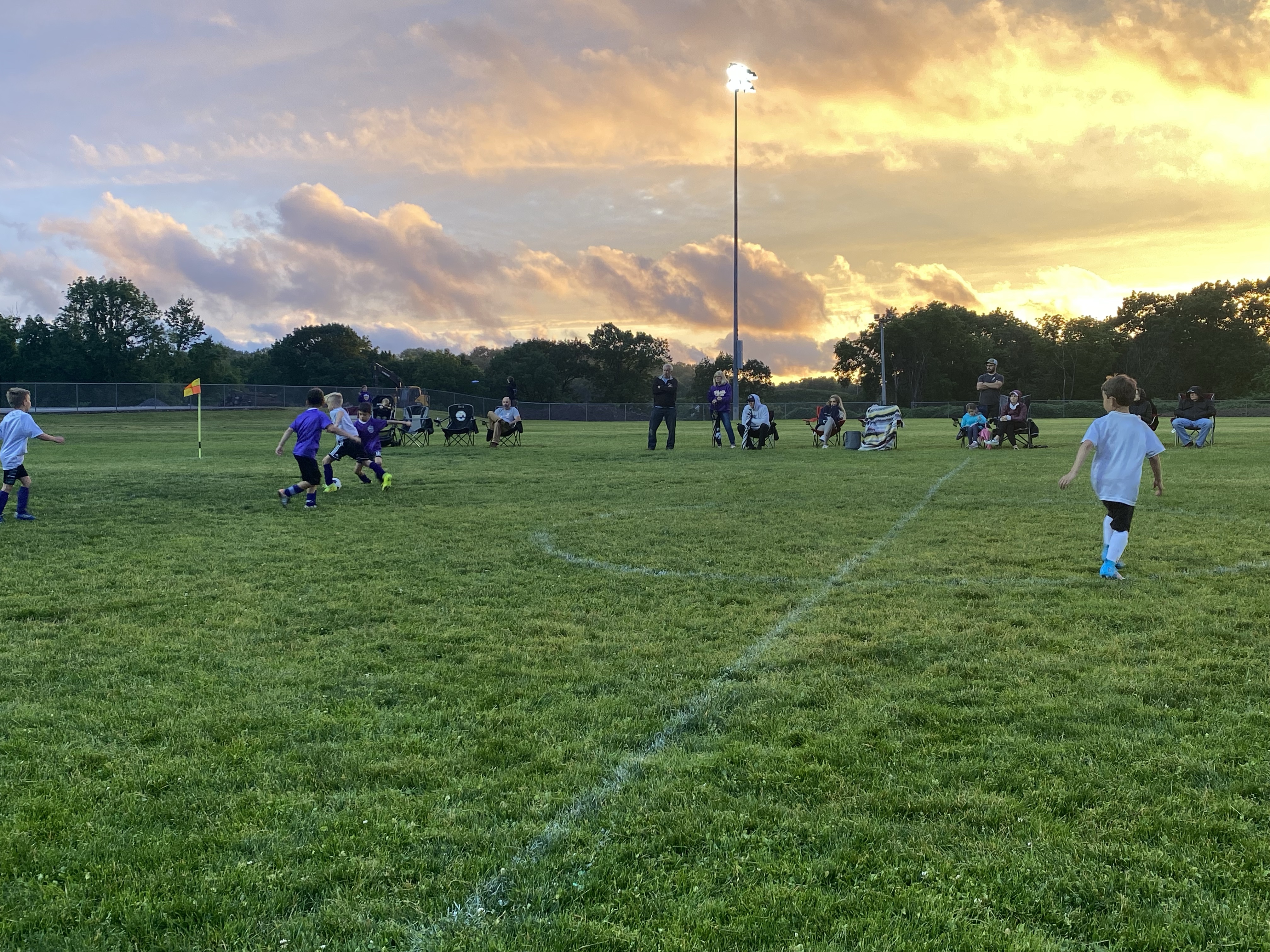 This is Grass Roots Football in Plum Boro, PA. Normally the lights are saved for the big kids but with all the 😜 crazy rain this spring season we were able to reschedule one of our make up games to a Thursday Night. Nature treated the Dynamo and Crew to a great sunset, a watered down pitch and really nice temperatures around 67 degrees resulting in anawesomee night for soccer.