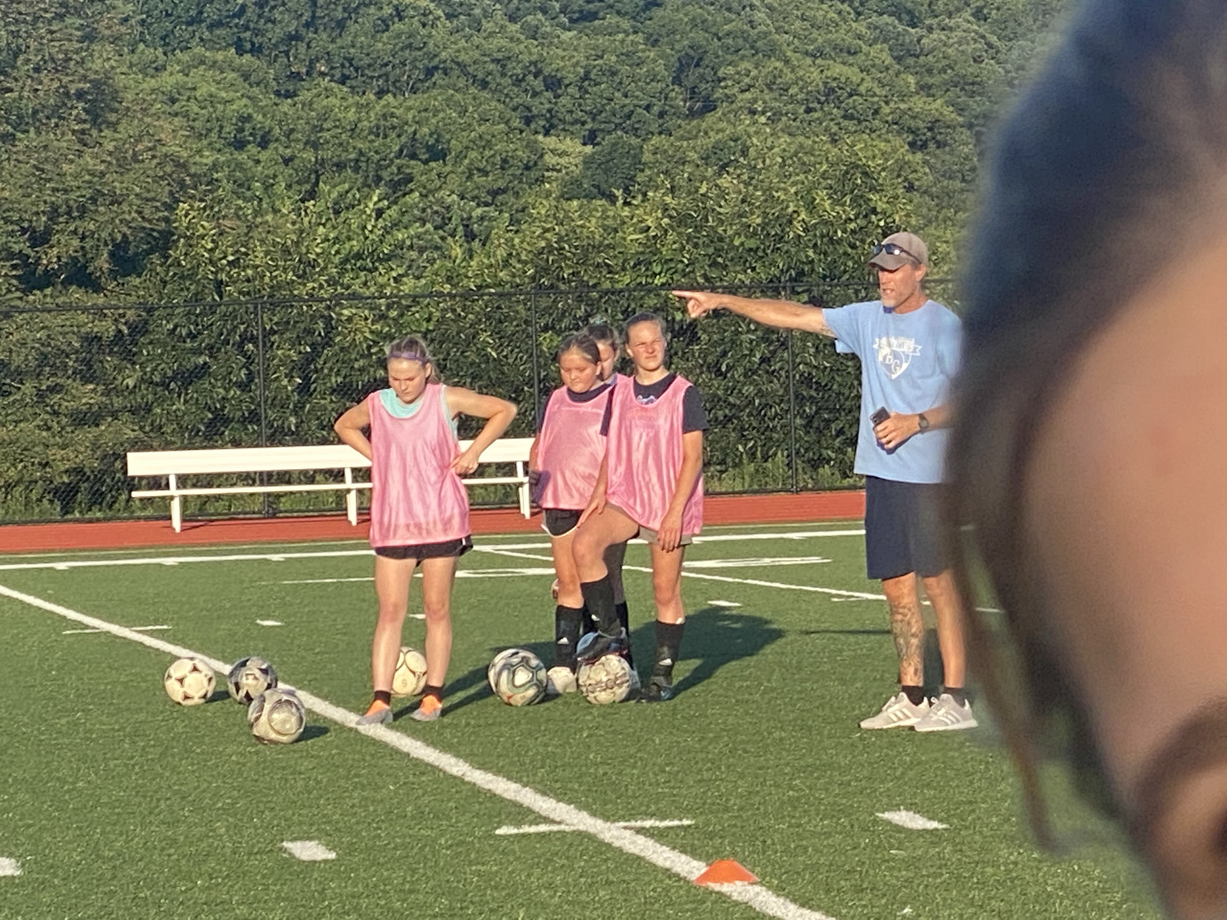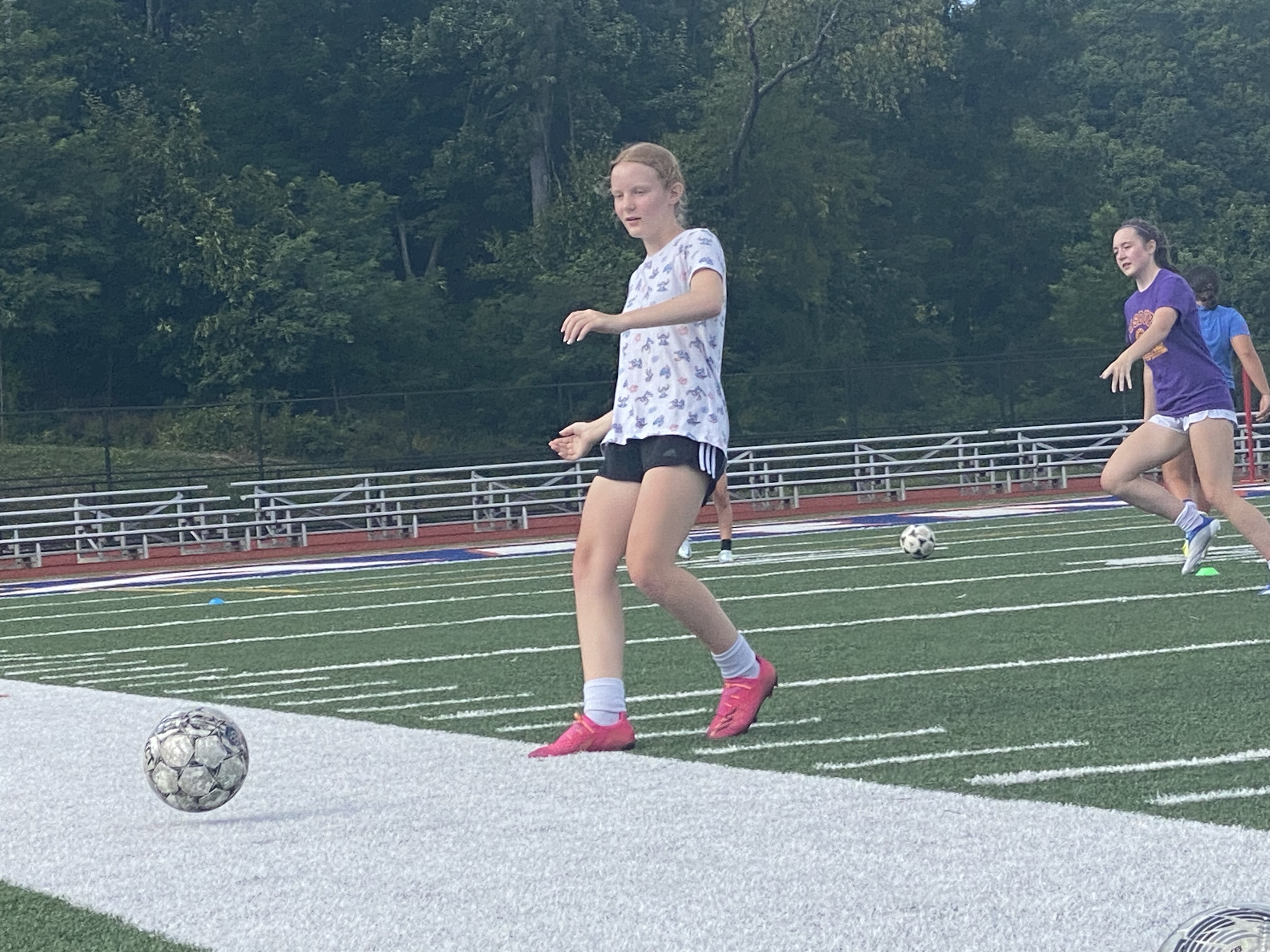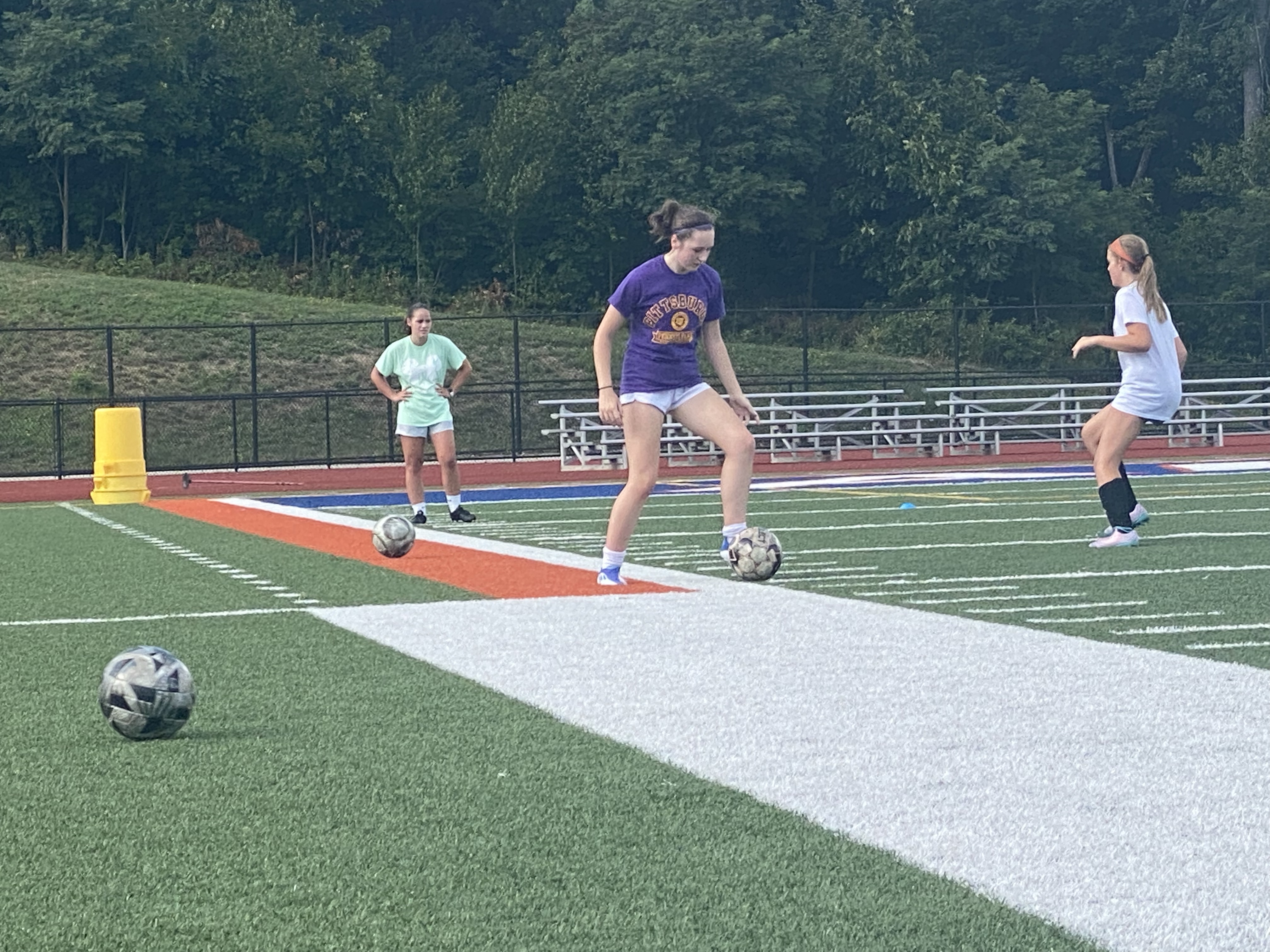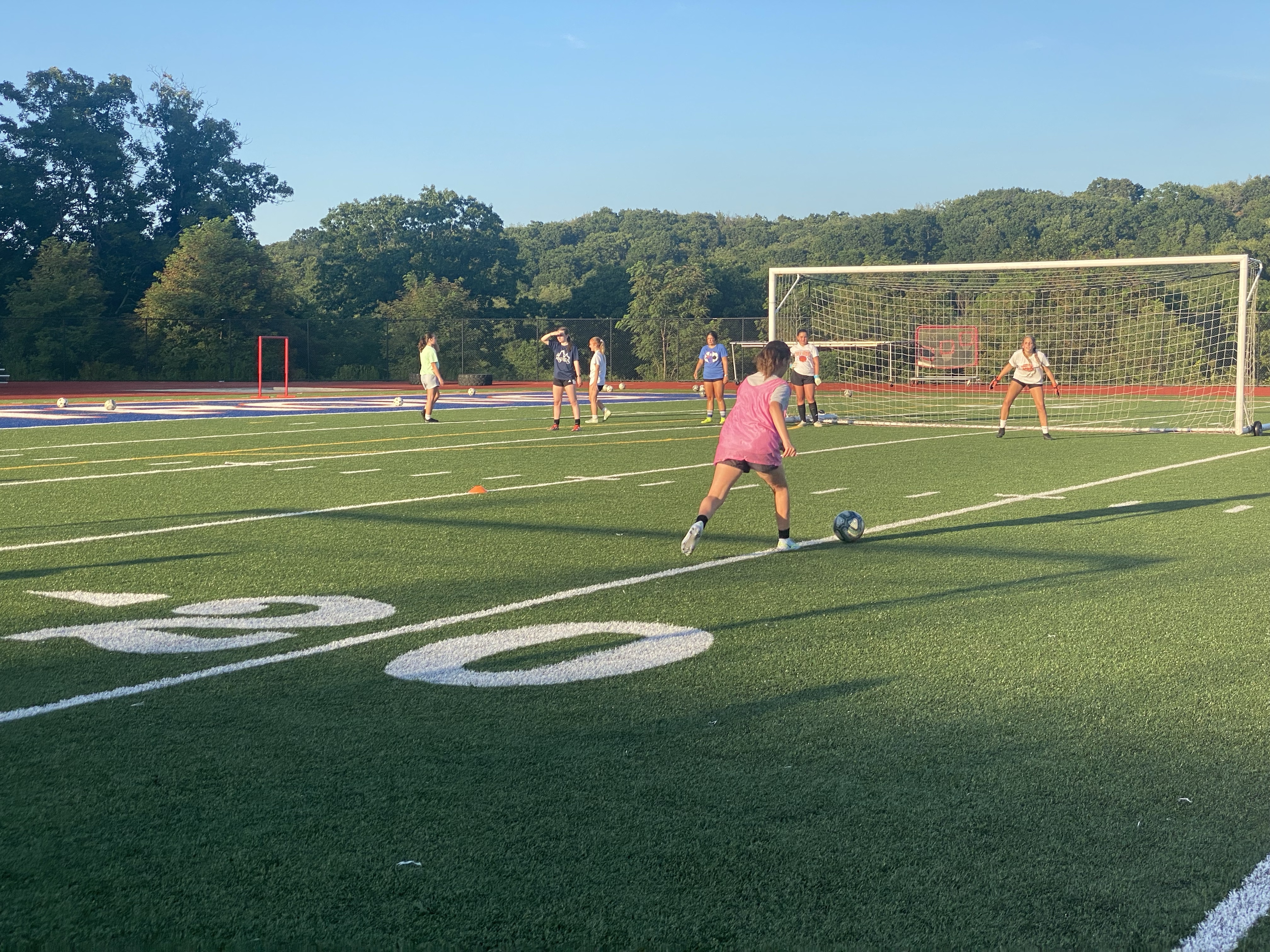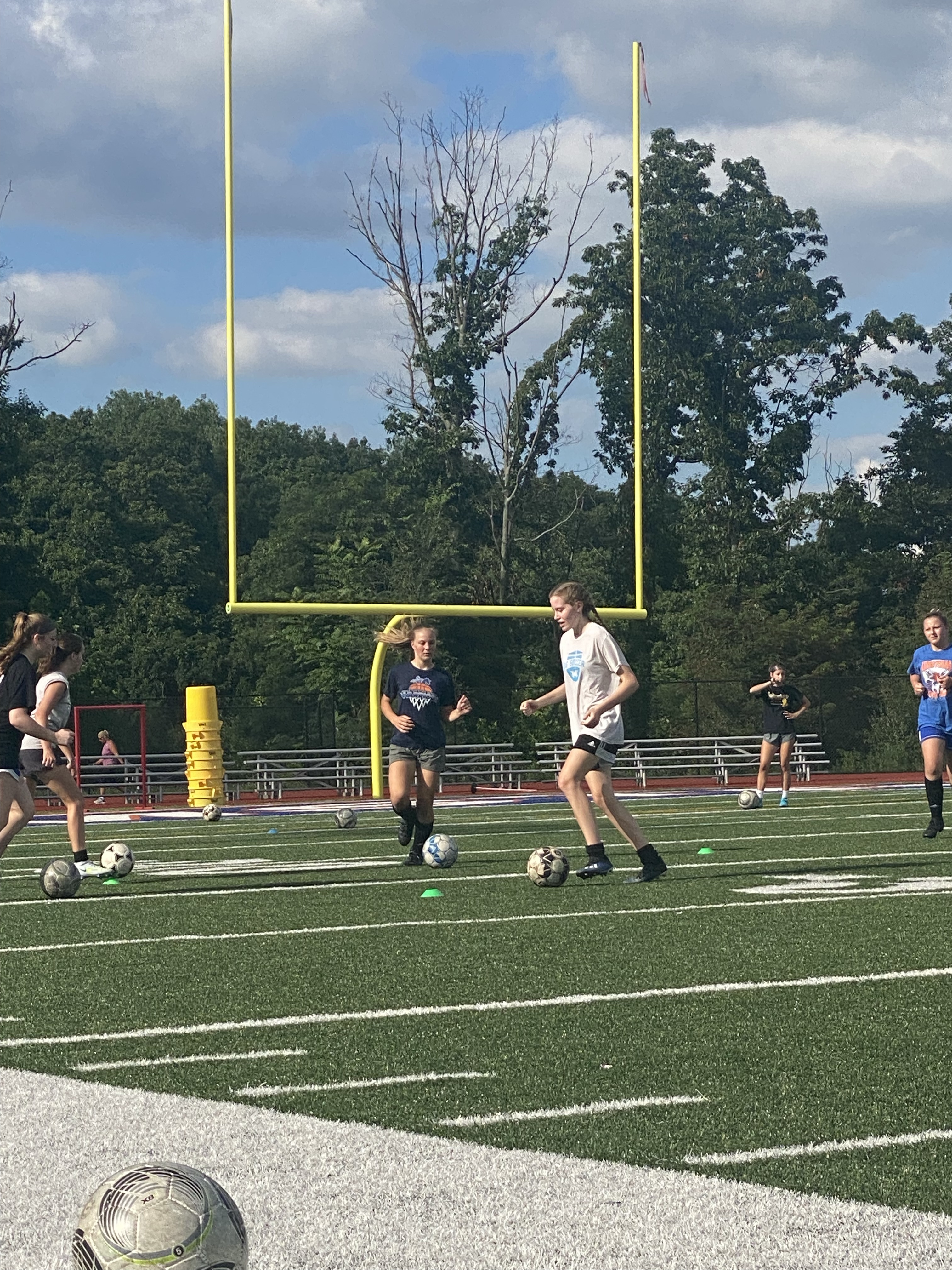 Tonight we learned about shooting. We learned that the boys tend to finish with their hips going one way! While some girls tend to twist their hips like Shakira before they strike the ball. The main part of the night was reviewing our approach, our plant foot positioning, our striking surface of the laces, our shoulders rounded instead of back for the photo opp, and a follow thru after striking.