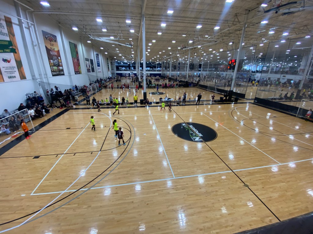 It is winter in the Northeastern United States. Outdoor soccer does not happen unless your club has access to an indoor field or bubble. When I was growing up we either played on a basketball court (futsal/five-a-side) or inside hockey dasher boards (indoor soccer). I have been playing a form of indoor soccer, five-a-side since I was 10 years old. We’ve used low bounce futsal balls, felt covered soccer balls and regular soccer balls on gym floors, plastic decking, the old carpet astroturf and now the infilled field turf. I’ve coached U8s to high school players through the various forms of indoor. I always look at this game as a teacher to reinforce the bigger outdoor game. This is a training tool that promotes 1v1 play, risk/reward situations, combination play, defending by getting compact and behind the ball. Positionally I’m able to take the outdoor 6, 8 and 10’s and find roles for them in a futsal diamond that may not seem natural to an outside observer.
